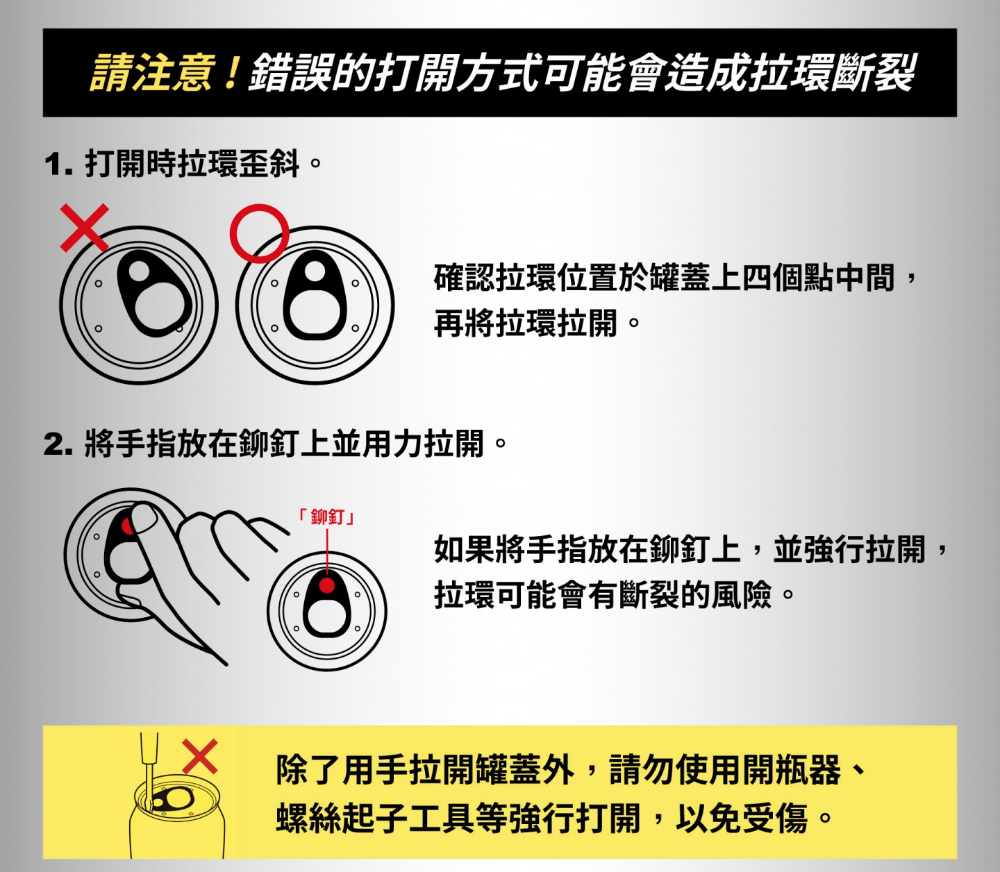 請先確認啤酒的溫度與周遭環境,極泡罐的特點是啤酒溫度越高越容易產生泡沫,但如果溫度過高或有快速晃動的情況,泡沫就很可能會瞬間溢出。請充分冷卻直到適飲溫度,然後在不過分晃動的狀態下享用。